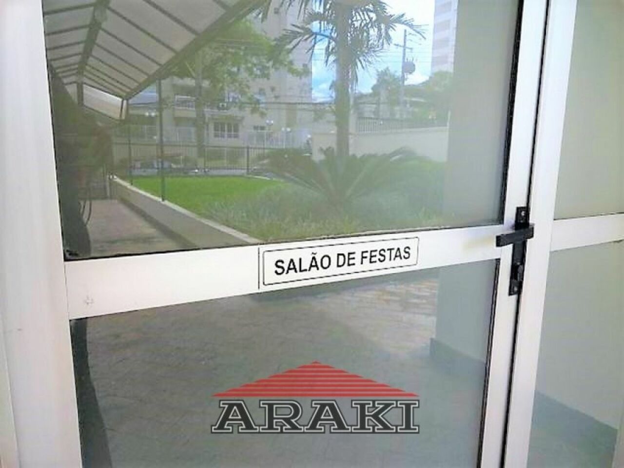 Condomínio com salão de festas, churrasqueira, sauna, piscina.
