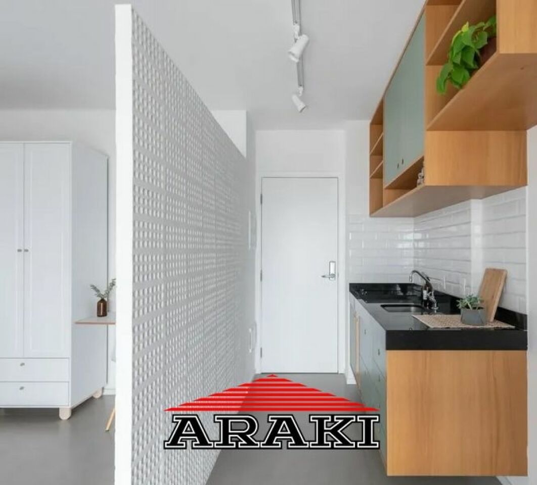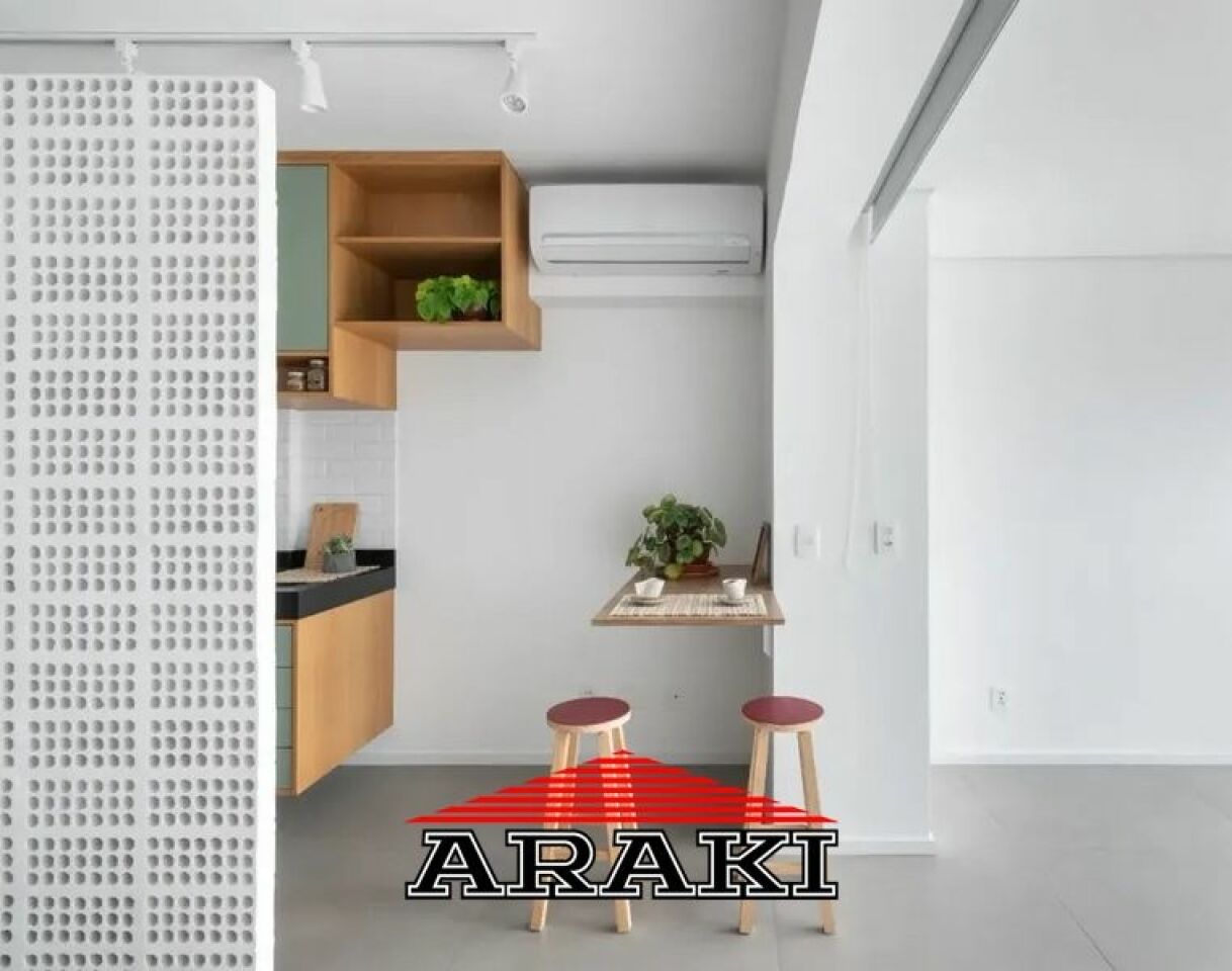 Studio assinado pelo escritório Macaxá Arquitetura, em andar alto, com vista ampla, além de excelente incidência de sol da manhã.